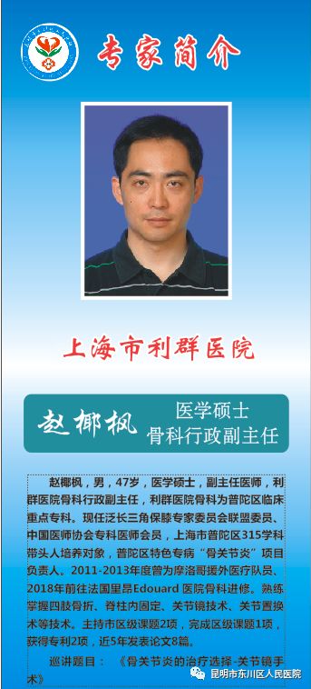 关节镜可诊治疾病:半月板损伤,滑膜炎,前、后交叉韧带损伤及内外侧副韧带损伤,复发性髌骨脱位,膝关节脱位,关节游离体,骨性关节炎,肩袖损伤,肩峰撞击综合征,习惯性肩关节脱位,冻结肩,踝关节韧带损伤,软骨损伤,韧带断裂等。自12月5日起上海普陀区利群医院关节镜专家赵椰枫将在我院外二科为期三个月的对口帮扶,尽心竭力为关节病患者解除疼痛困扰,助力患者重返健康及社会。